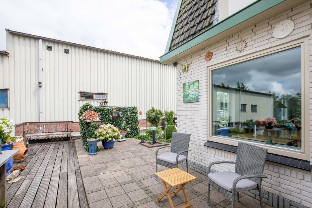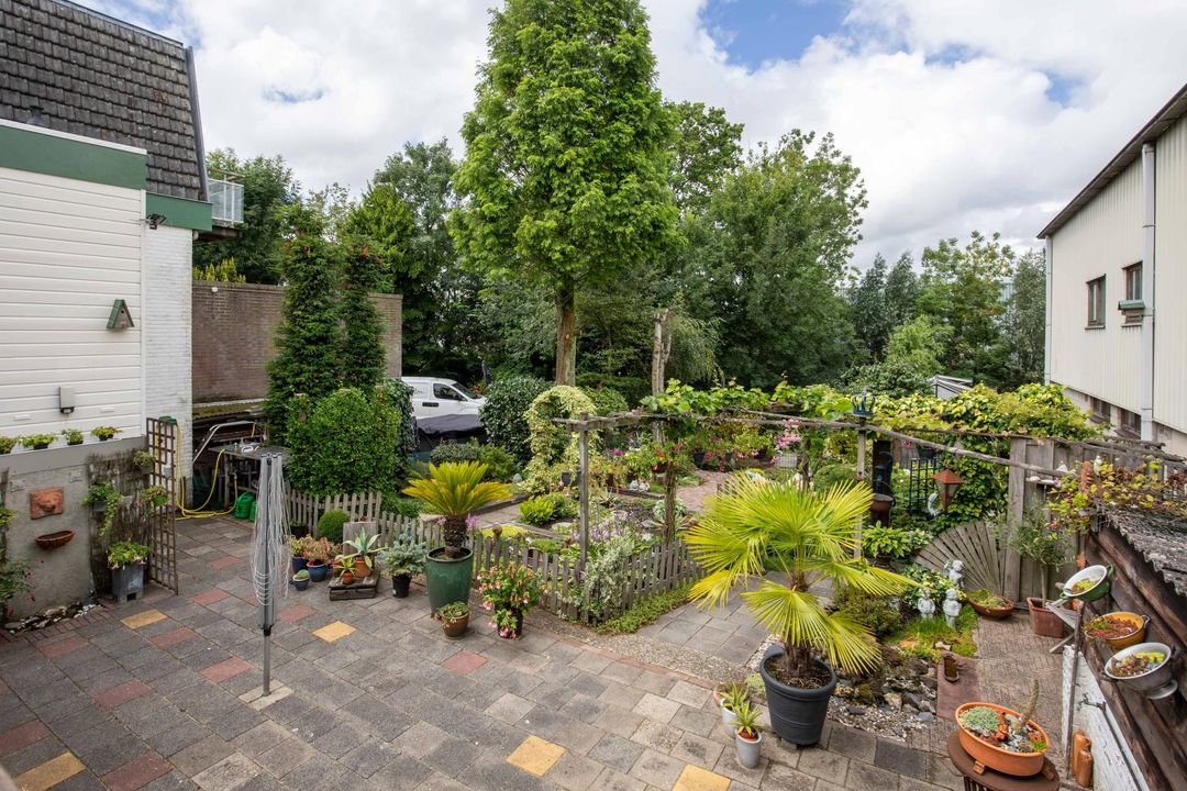 – Terras aan de achterzijde met trap naar de lager gelegen achtertuin;