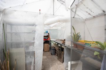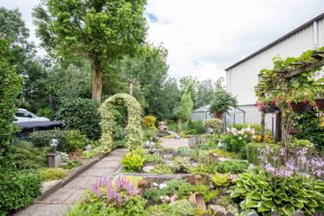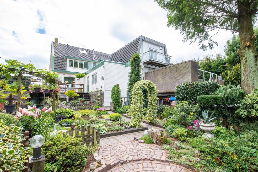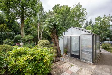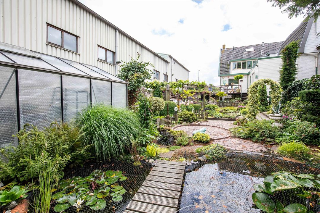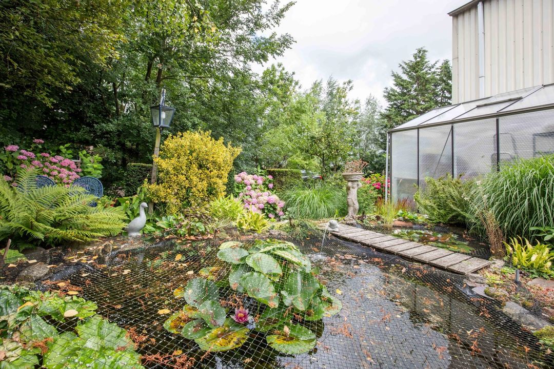 De tuin: Wat een heerlijke tuin en wat een mogelijkheden! Vanuit de bijkeuken stapt u zó het riante terras op. Via een trap is de tuin bereikbaar, deze is gelegen op het noordwesten en biedt volop gelegenheid voor meerdere zithoeken in zowel de zon als in de schaduw. De tuin is speels ingedeeld met een vijver en diverse plantenborders. Ook is er een kweekkas aanwezig.