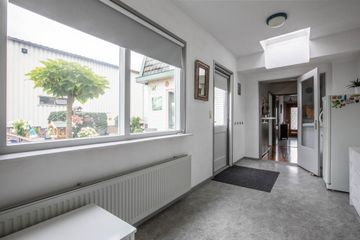 De entree: De entree bevindt zich aan de voorzijde. In de hal treft u de trap naar verdieping, de meterkast, het toilet en de (kleine) kelder. Vanuit de hal is er toegang tot de woonkamer en de keuken. Via de keuken komt u in de bijkeuken in de aanbouw.