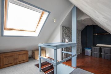Een vaste trap brengt u naar de zolderverdieping. Er is een groot dakraam aanwezig. Ook treft u op deze verdieping een wastafel. U heeft veel opbergmogelijkheden op deze verdieping.