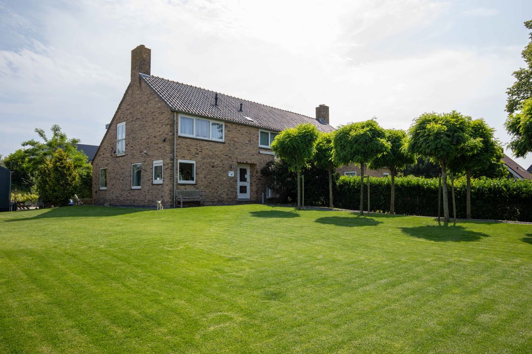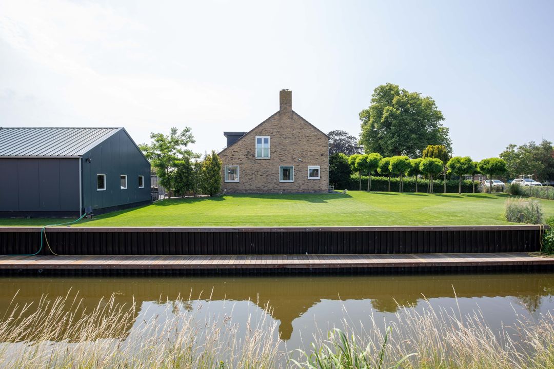 Riante voor-, zij- en achtertuin met volop groen. Aan de achterzijde parkeergelegenheid voor meerdere auto’s op eigen terrein en toegang tot de vrijstaande garage. De zijtuin grenst aan sierwater en heeft zelfs een recent aangelegde eigen steiger.