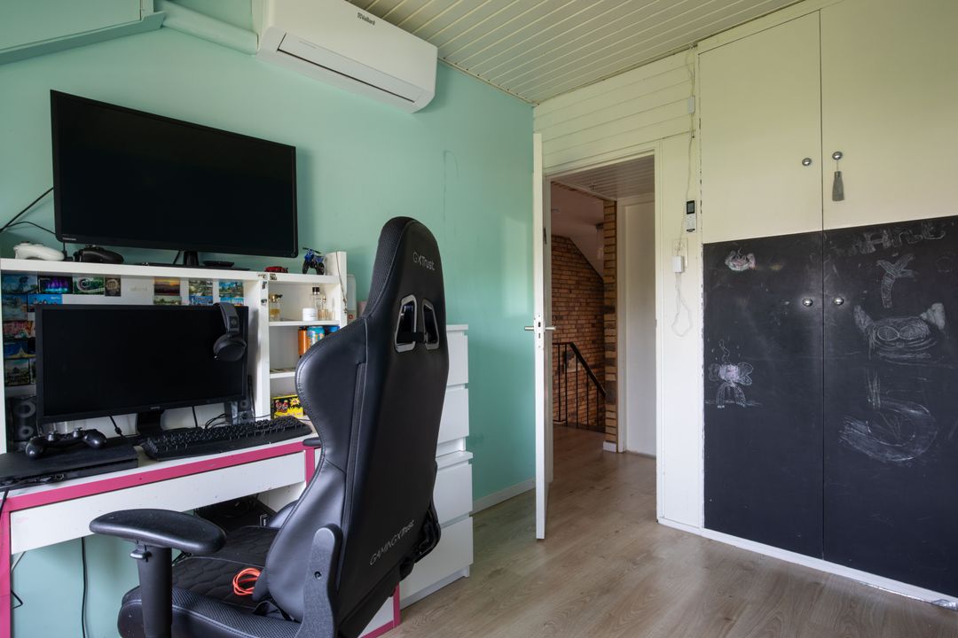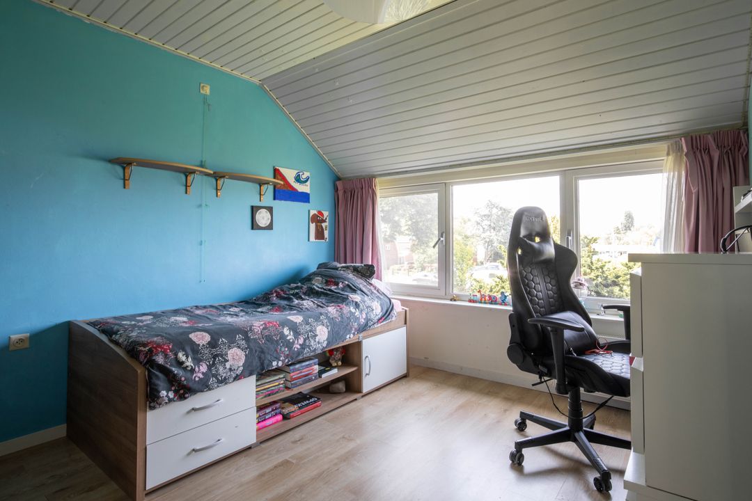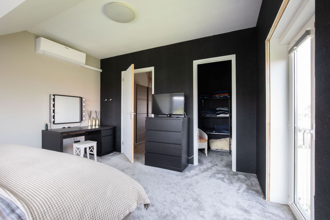De eerste verdieping is uitgerust met drie slaapkamers. De master bedroom is gelegen aan de achterzijde van de woning. De kamer is vergroot middels een dakkapel (2024) en voorzien van een Frans balkon en walk-in closet. De overige twee slaapkamers zijn ook van een fijn formaat en beide uitgerust met een inbouwkast. Alle slaapkamers beschikken over airconditioning. Daarnaast is er een vierde kamer die nog naar wens is in te delen, bijvoorbeeld een slaapkamer of kantoor. Deze kamer beschikt tevens over een wasmachine aansluiting. Op de overloop is toegang tot de vliering, die volop extra opbergruimte biedt.