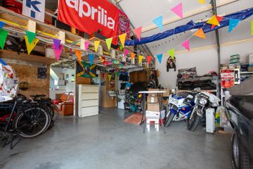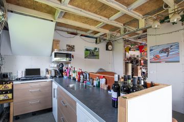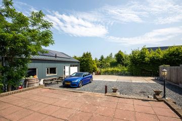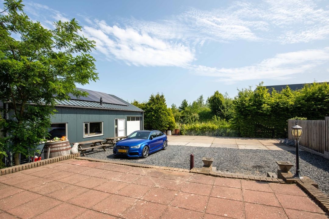 Achterin de tuin staat een grote vrijstaande garage, gebouwd in 2020. De garage is van een ruim formaat en voorzien van een toilet, keukenblok, vloerverwarming en een vliering. Een multifunctionele ruimte die zich uitstekend leent voor hobby’s, opslag, parkeren van meerdere auto’s of het creëren van een eigen werkplek aan huis.