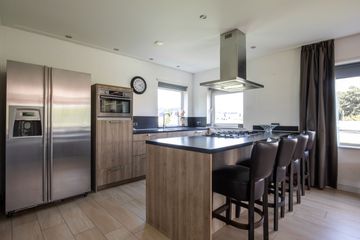 een Amerikaanse koelkast met vriezer. Het schiereiland beschikt over een eetbar, ideaal voor een snelle lunch of gezellige borrel. Verder beschikt de begane grond over een handige bijkeuken/werkkamer met een aansluiting voor de wasmachine en toegang tot de achtertuin. De gehele begane grond is voorzien van vloerverwarming.