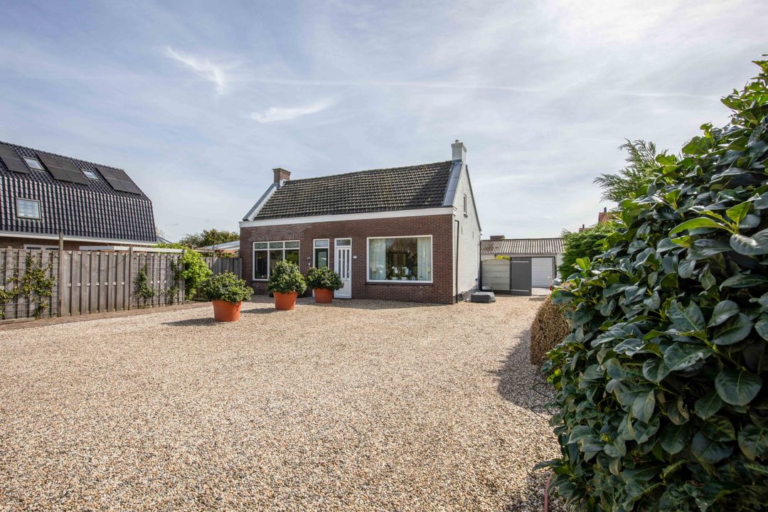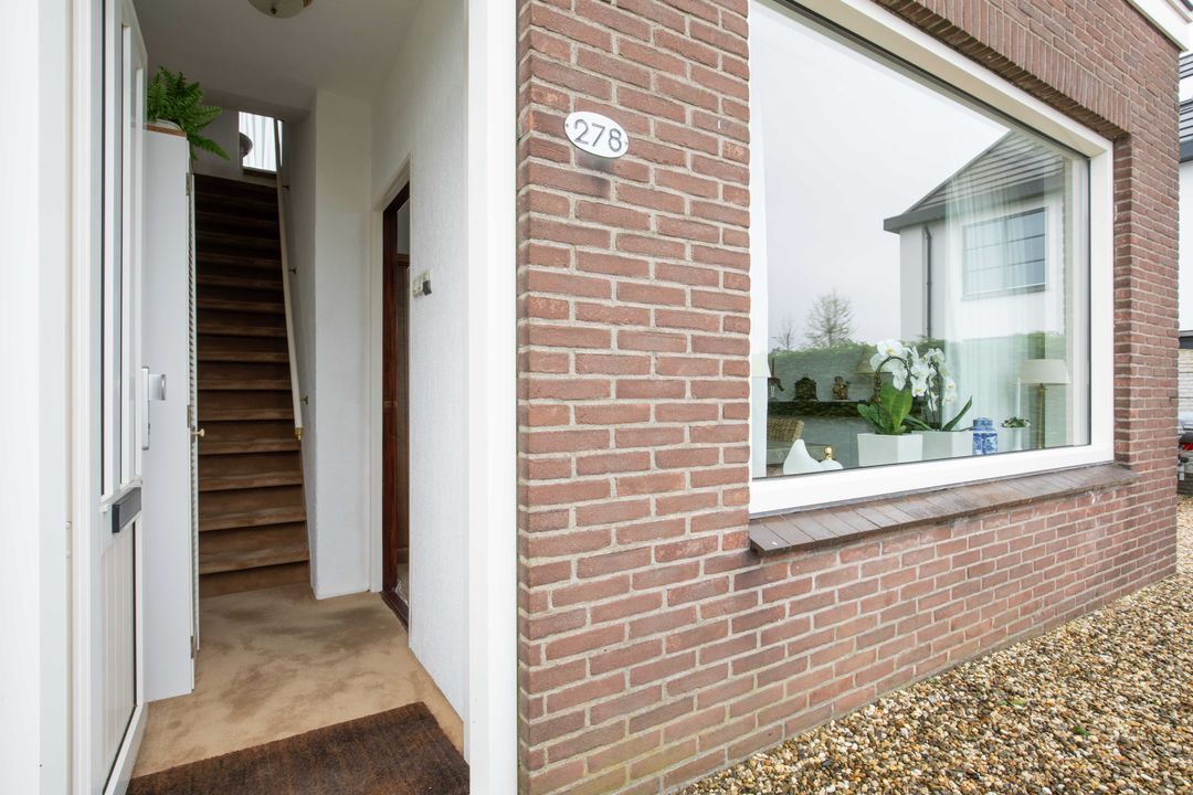 De entree van de woning bevindt zich aan de voorzijde van de woning.