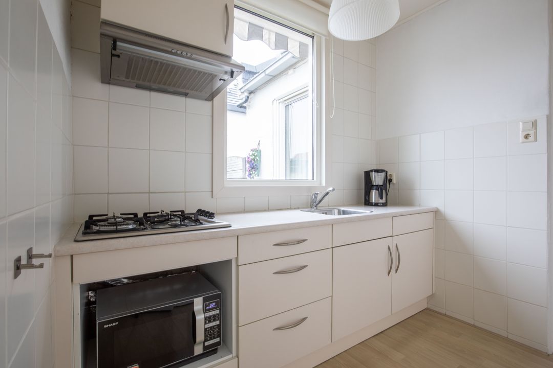 Vanuit de woonkamer heb je toegang tot de keuken uitgerust met een 4-pits gaskookplaat.