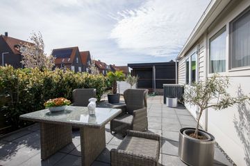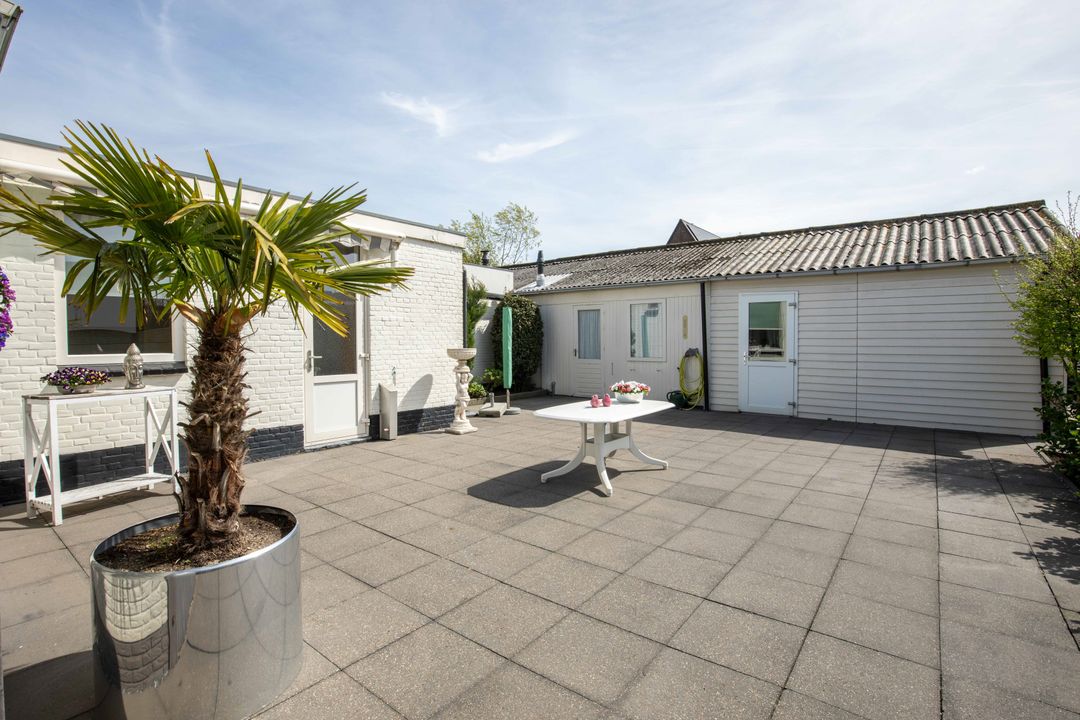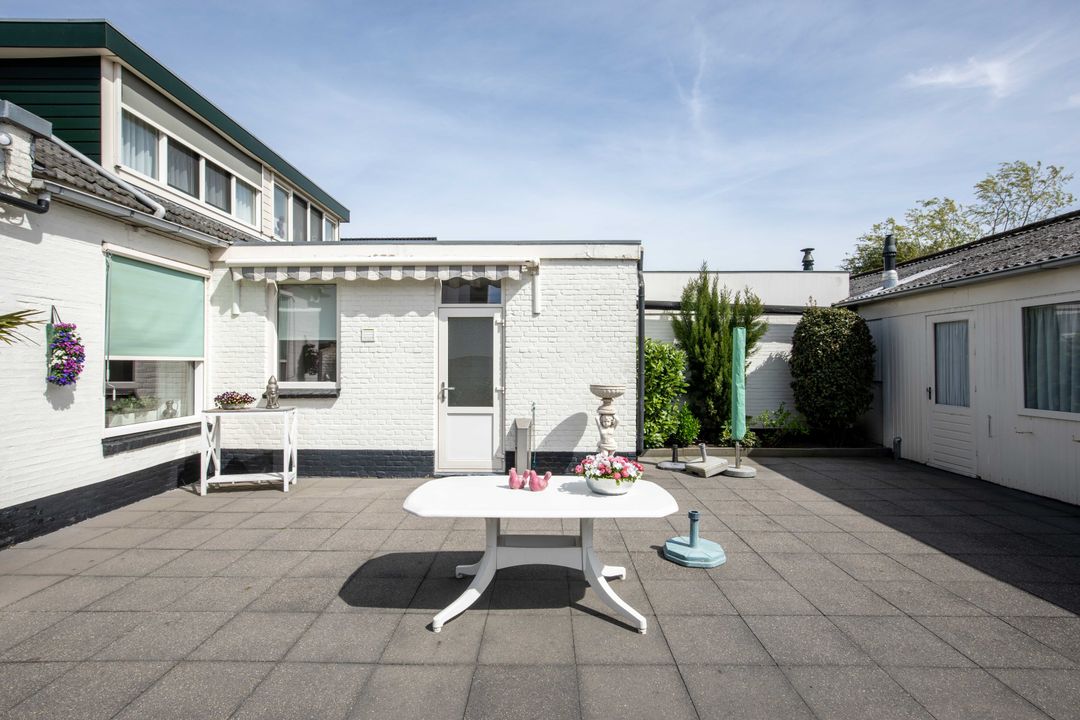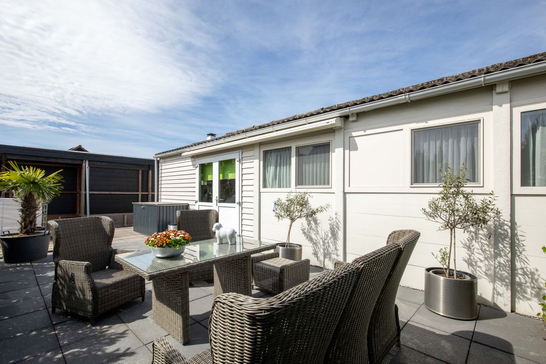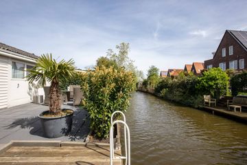 De achtertuin is fraai aangelegd en gelegen op het zuidoosten. Achter het bijgebouw ligt een terras aan sierwater, waardoor je optimaal van de buitenlucht kunt genieten. Dit terras beschikt over een zwemtrap zodat u op de warme zomerdagen een heerlijke duik kunt nemen.