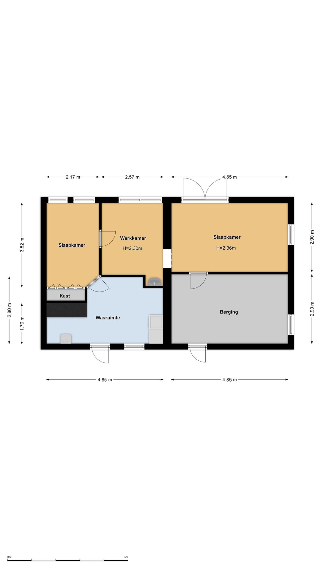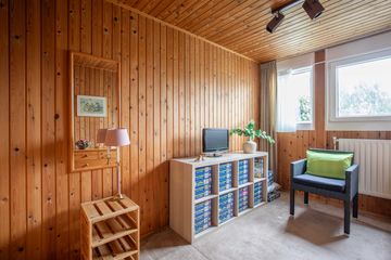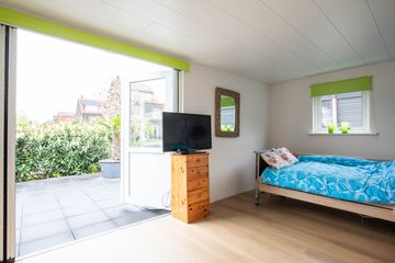 De achtertuin biedt toegang tot het bijgebouw, waar je maar liefst drie extra kamers aantreft. De kamers bevinden zich aan de achterzijde van het bijgebouw. De ruimste kamer heeft openslaande deuren naar het terras. De andere twee kamers zijn via deze ruime kamer te bereiken. Ook is er een wasruimte aanwezig, voorzien van de cv-ketel en aansluitingen voor de wasmachine en de droger.