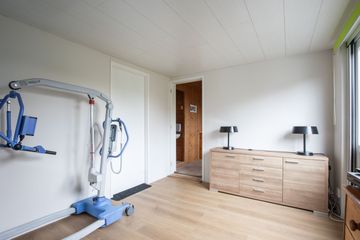 Op de eerste verdieping bevindt zich de ruime slaapkamer met dakkapel en een wastafel, hiernaast bevindt zich een extra kamer die je naar eigen wens kunt gebruiken.