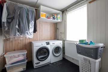 – Bijgebouw met drie kamers, een berging en een wasruimte met de aansluitingen voor de wasmachine en de droger;