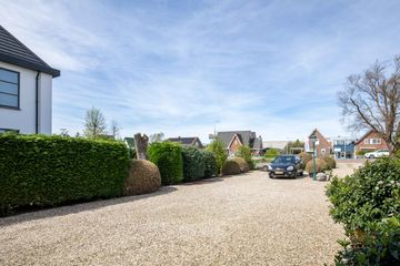 De woning heeft een riante voortuin van circa 25 meter lang, hier kunt u meerdere auto’s parkeren op eigen terrein.