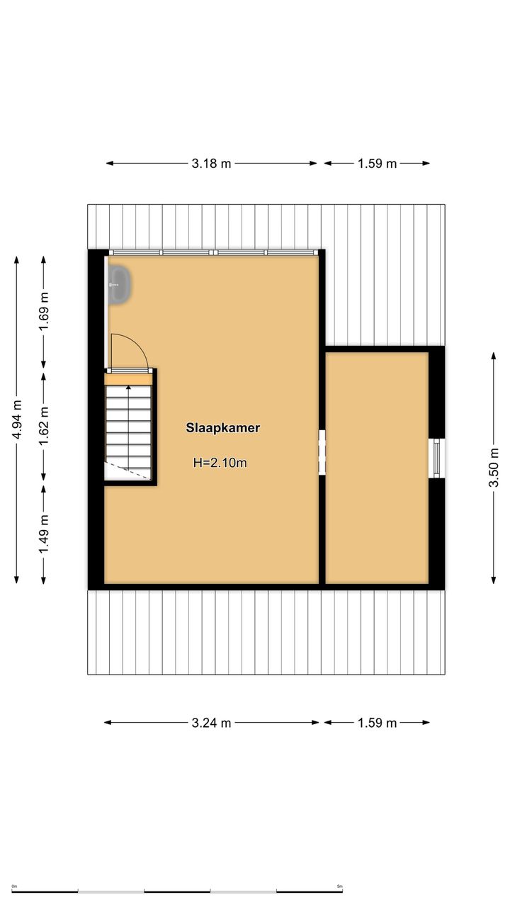 – Op de eerste verdieping treft u de slaapkamer met dakkapel met daaraan een extra kamer;