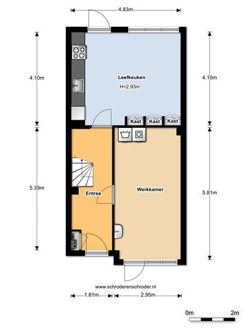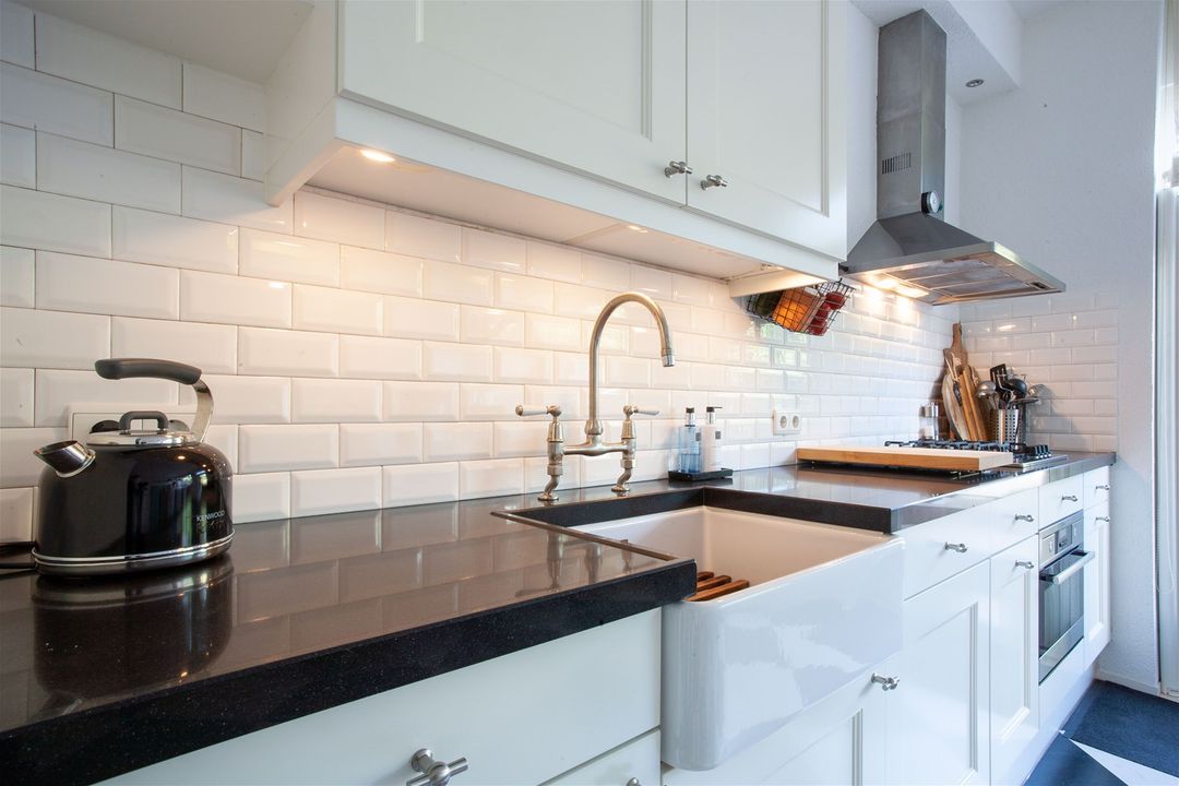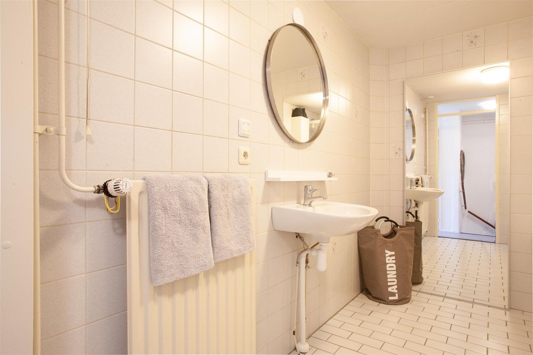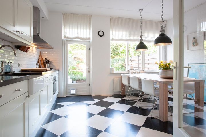 Op de begane grond treft u de entree met meterkast. Vanuit de entree is er toegang tot de werkkamer en de leefkeuken. In de werkkamer is de aansluiting voor de wasmachine en droger. De keuken is in een klassieke stijl en voorzien van een 4-pits gasfornuis, een spoelbak, een vaatwasser, een koelkast, een vriezer en een combi magnetron. Vanuit de keuken stapt u ook zo de achtertuin in. Wakker worden met een bakje koffie in de ochtendzon, dat klinkt toch heerlijk?!
