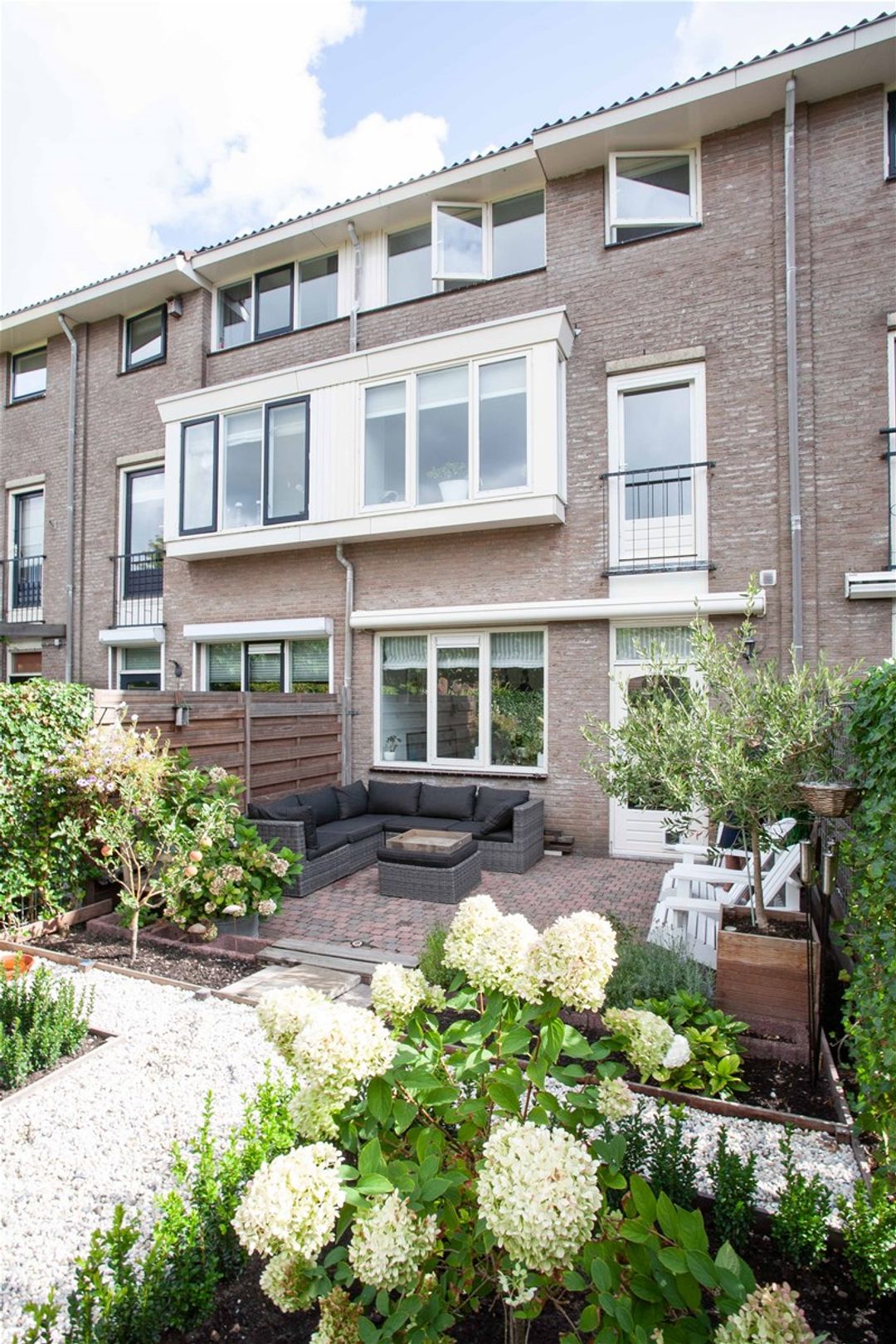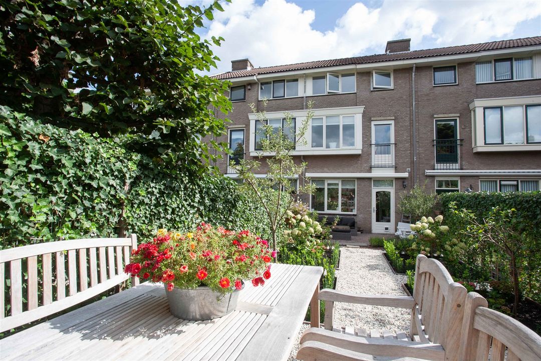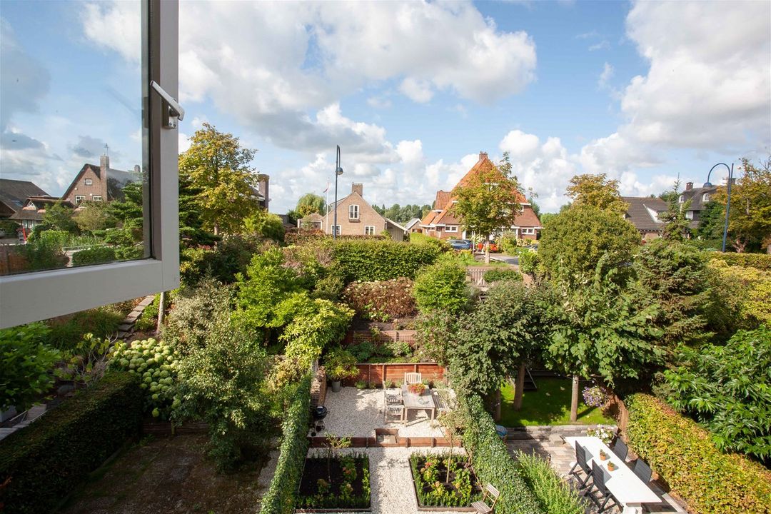 over de tuin richting het terras grenzend aan de woonkeuken. De gunstige ligging en de diepte zorgt voor altijd een plek in de zon!