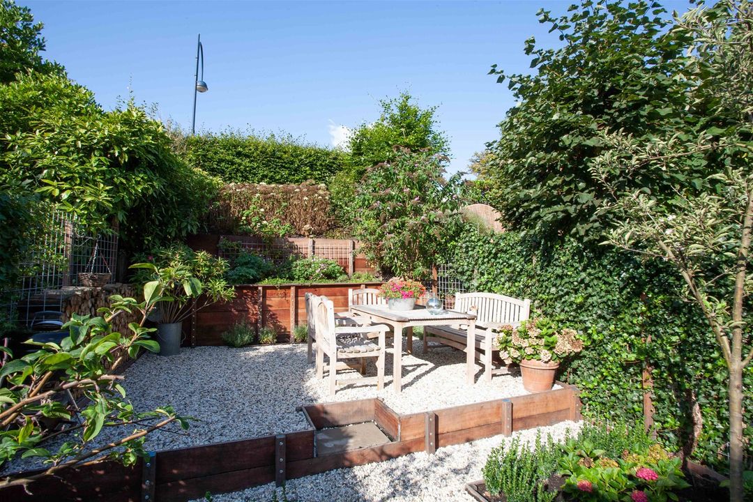 De diepe tuin is op elk moment van de dag voorzien van zon.