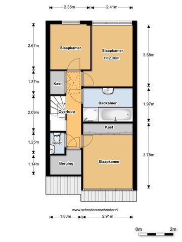 Alle drie de slaapkamers bevinden zich op de tweede verdieping.