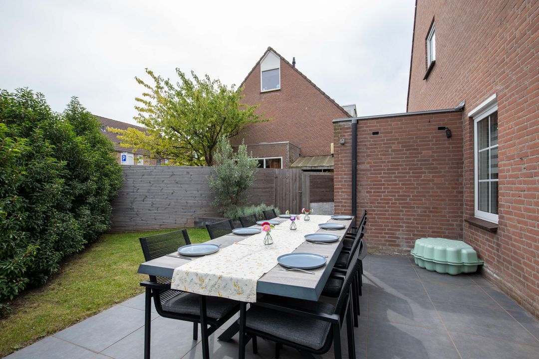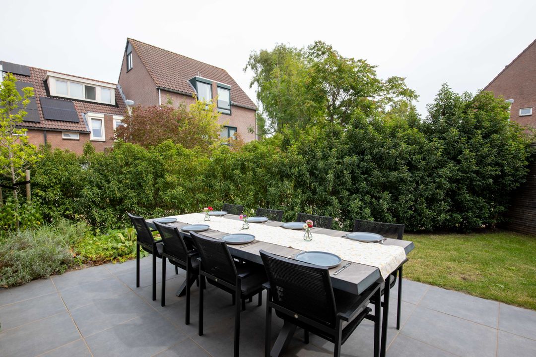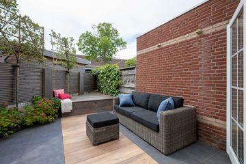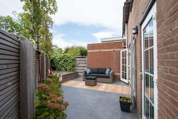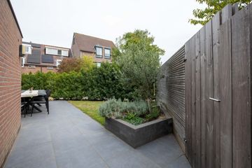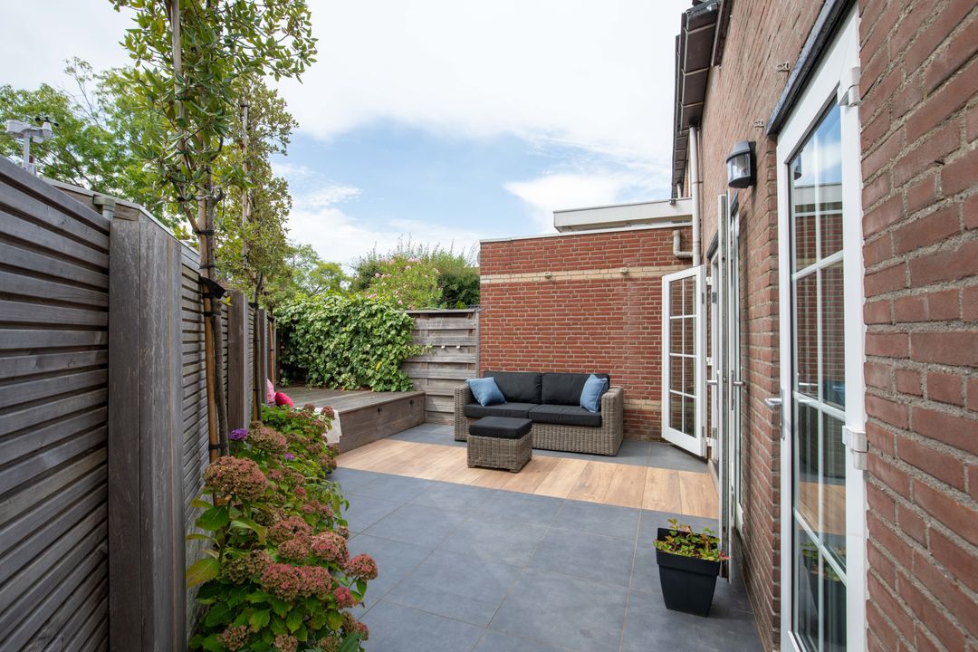 De tuin is volledig gerenoveerd. De achtertuin gelegen op het zuidwesten is betegeld en biedt een fijne zitplek. De zijtuin is eveneens ruim en georiënteerd op het zuidoosten, met een achterom. Dankzij de ligging kunt u de hele dag genieten van de zon. Verder beschikt de tuin over een aangebouwde berging voor de fietsen en extra opslag.