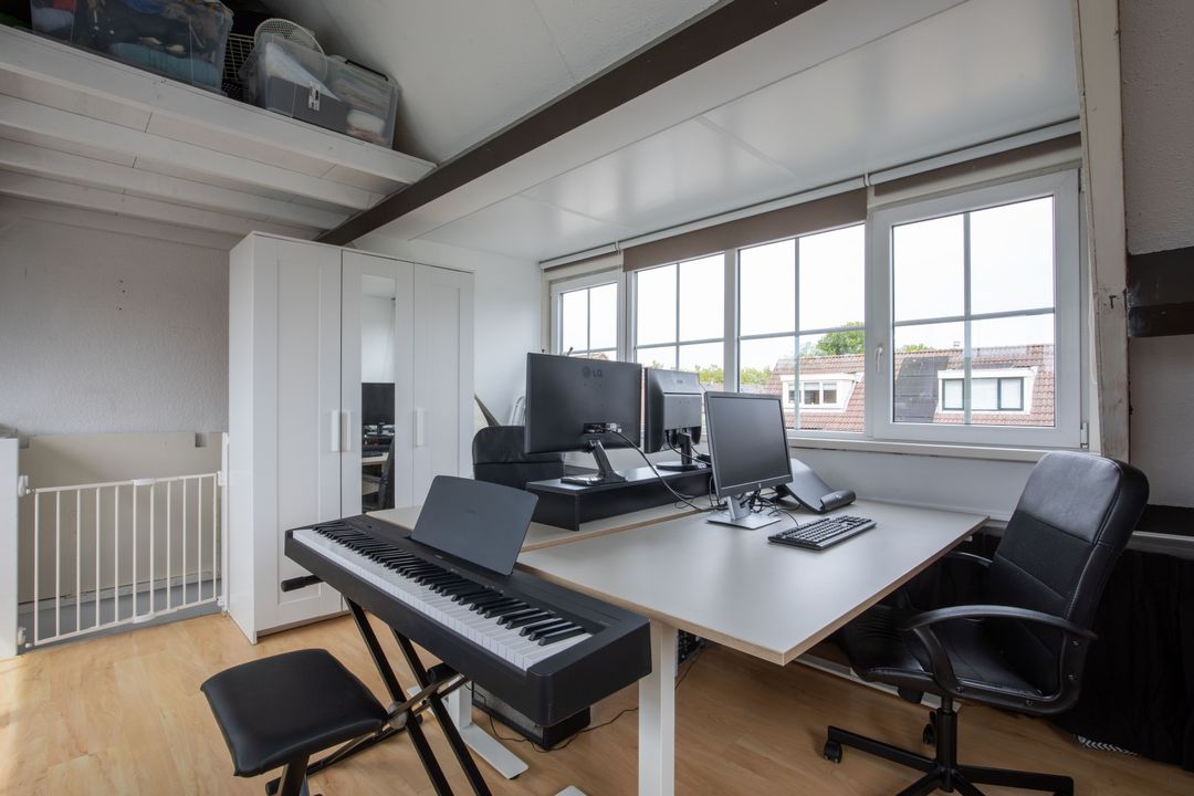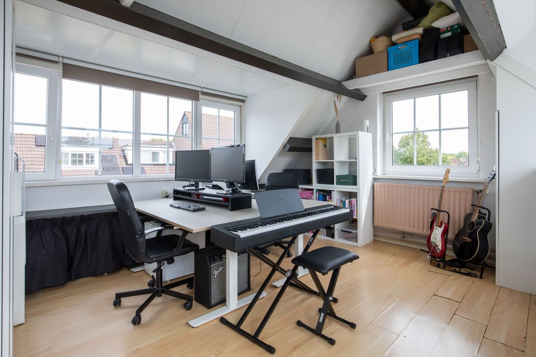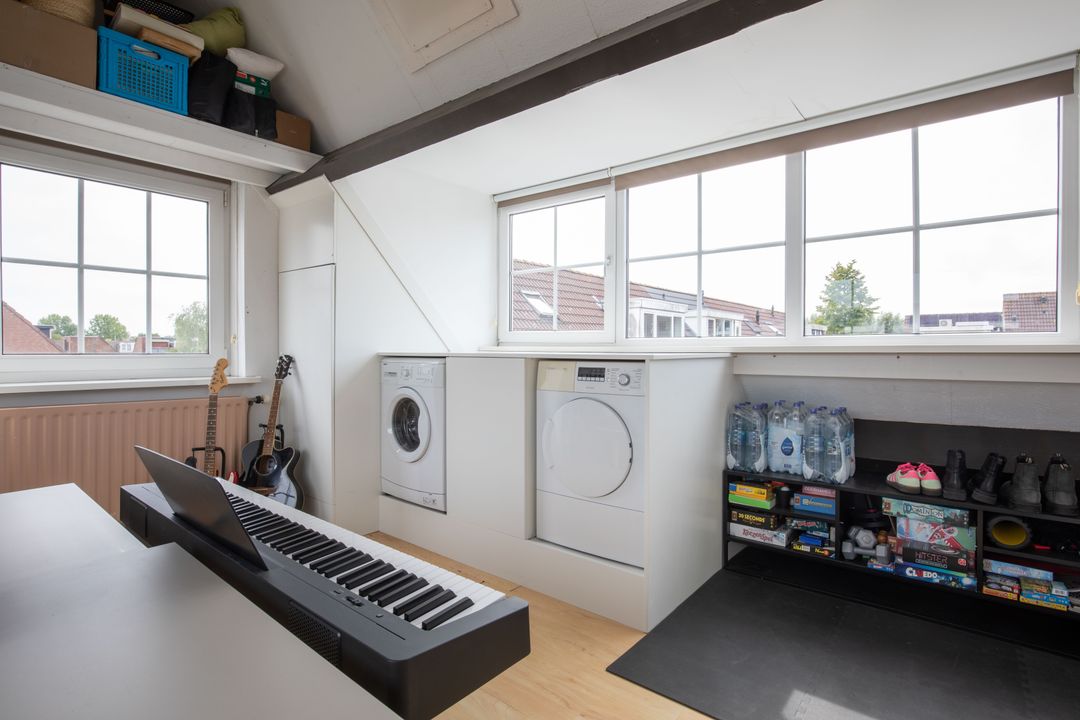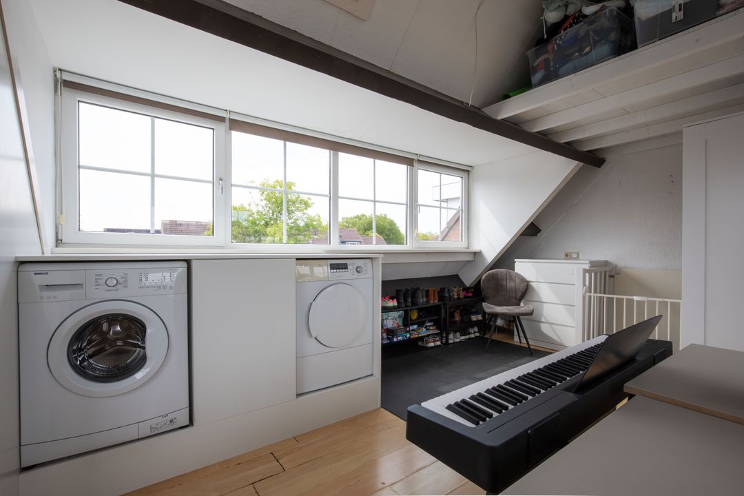 De zolder verdieping is vergroot middels twee dakkapellen, waardoor een royale en lichte ruimte is ontstaan. Deze verdieping kan naar wens worden ingericht. De zolder biedt plaats aan de wasmachine- en drogeraansluiting. De cv-installatie is netjes weggewerkt in een kast. Daarnaast is er een gedeeltelijke vliering voor extra bergruimte.