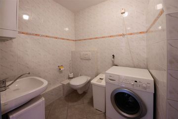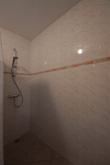 De badkamer: De badkamer is voorzien van een inloopdouche, wastafel, toilet, een spiegelkast en de wasmachine aansluiting. De ruimte is volledig betegeld.