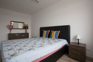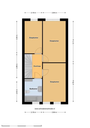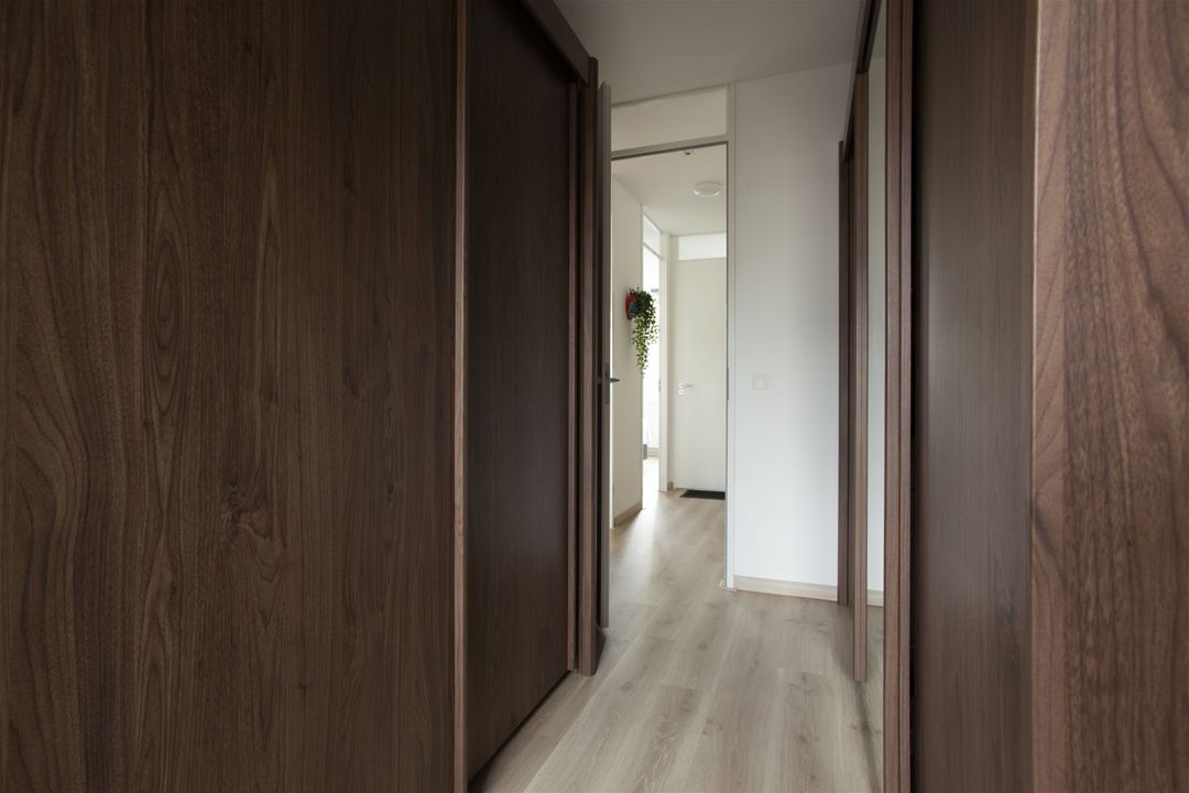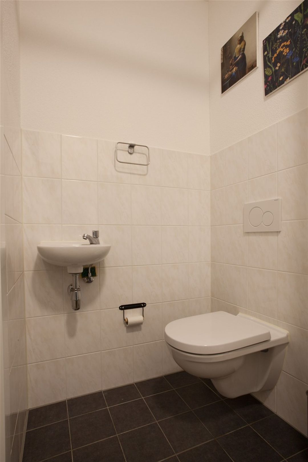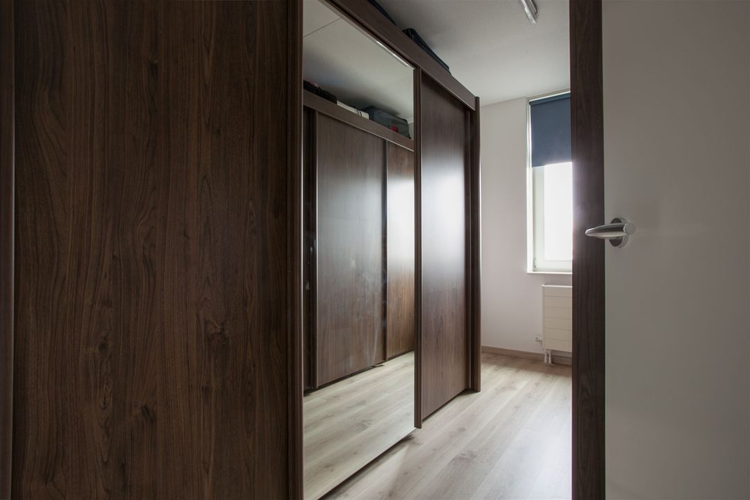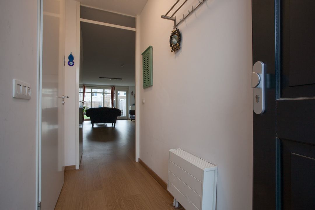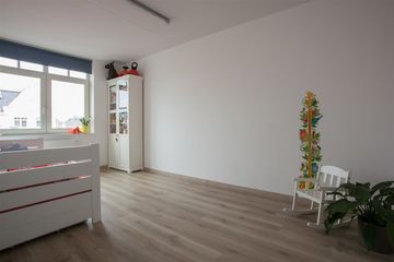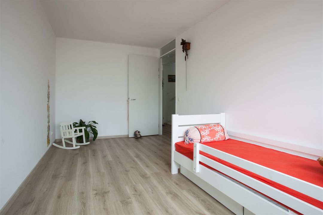 Slaapkamers achterzijde: Twee slaapkamers zijn gelegen aan de achterzijde van de woning. De kleinste slaapkamer doet momenteel dienst als kleedruimte, maar deze kamer zou bijvoorbeeld ook als een fijne werk- of kinderkamer dienst kunnen doen. De naastgelegen slaapkamer is ook zeker ruim te te noemen. De gehele eerste verdieping is voorzien van modern laminaat.