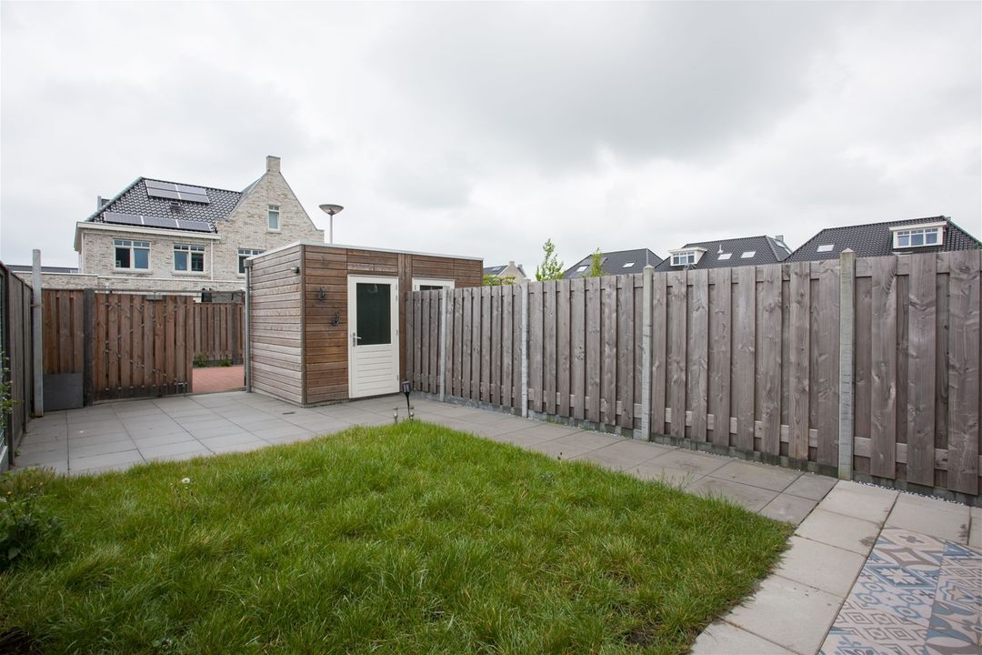 De tuin: De tuin is gelegen op het noorden en is van een moderne bestrating voorzien, in combinatie met een gazon. U kunt hier diverse leuke zithoekjes maken, zodat er in de tuin altijd een gezellig plekje is. De vrijstaande houten berging, voorzien van diverse schappen biedt ruimte voor uw fietsen en tuinmeubilair. Ook is er een achterom. Aan de achterzijde is ruimte voor het parkeren voor één auto. De bestrating is hierop aangepast en er is een brede toegansdeur gemaakt, om het parkeren van ook grotere auto’s eenvoudige te maken.
