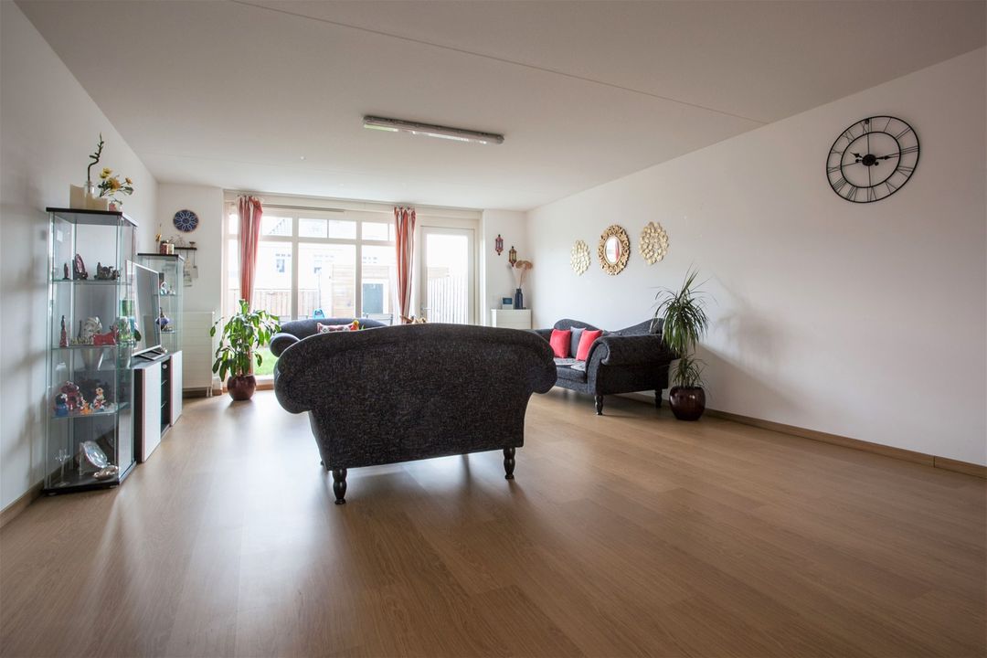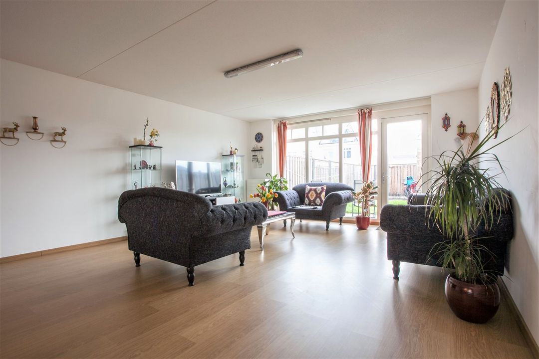 de achterzijde de living, voorzien van een ruime uitbouw en grenzend aan de zonnige achtertuin.