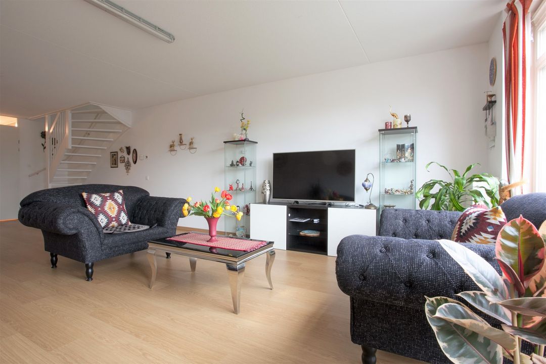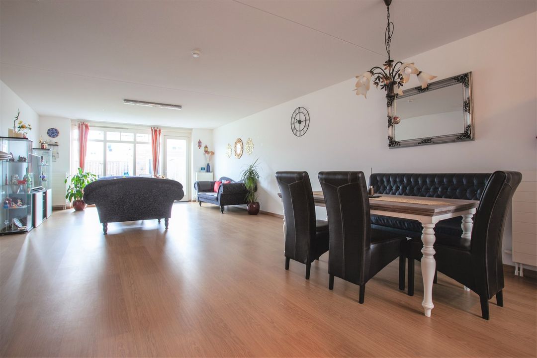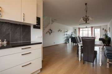 De woonkamer: De woonkamer beschikt aan de achterzijde over een uitbouw met grote raampartijen en de toegangsdeur naar de keurige tuin. Aan de achterzijde is de zithoek gesitueerd waar u een leuk zicht op de tuin heeft. De keuken is aan de voorzijde gesitueerd. Tevens treft u in deze ruimte de trapopgang naar de eerste verdieping. Dit maakt de woonkamer prettig ruim en er is meer dan genoeg plaats voor een riant zit- en eetgedeelte.