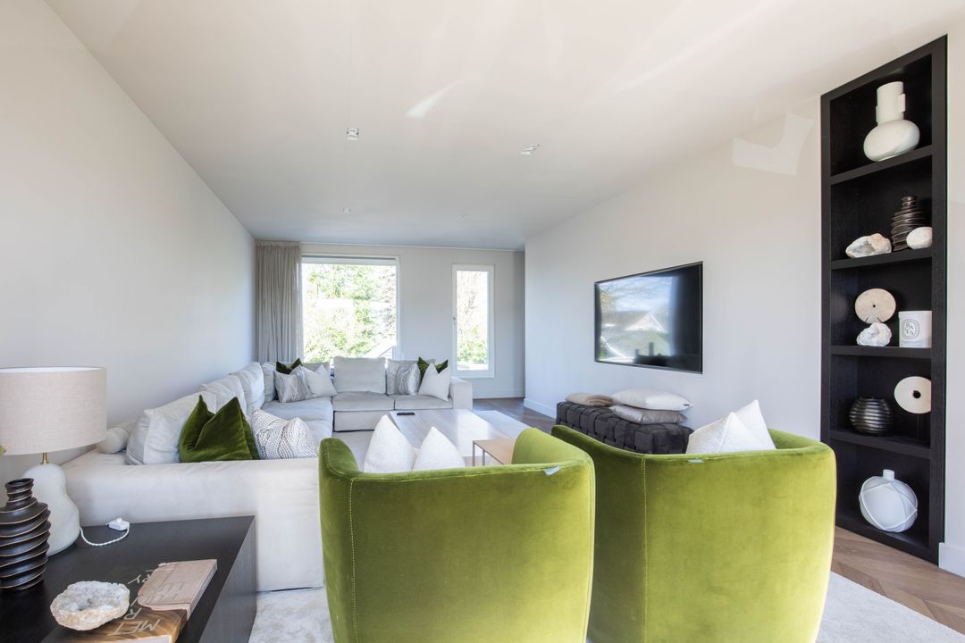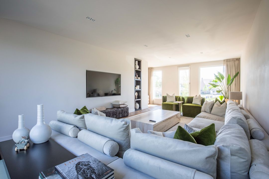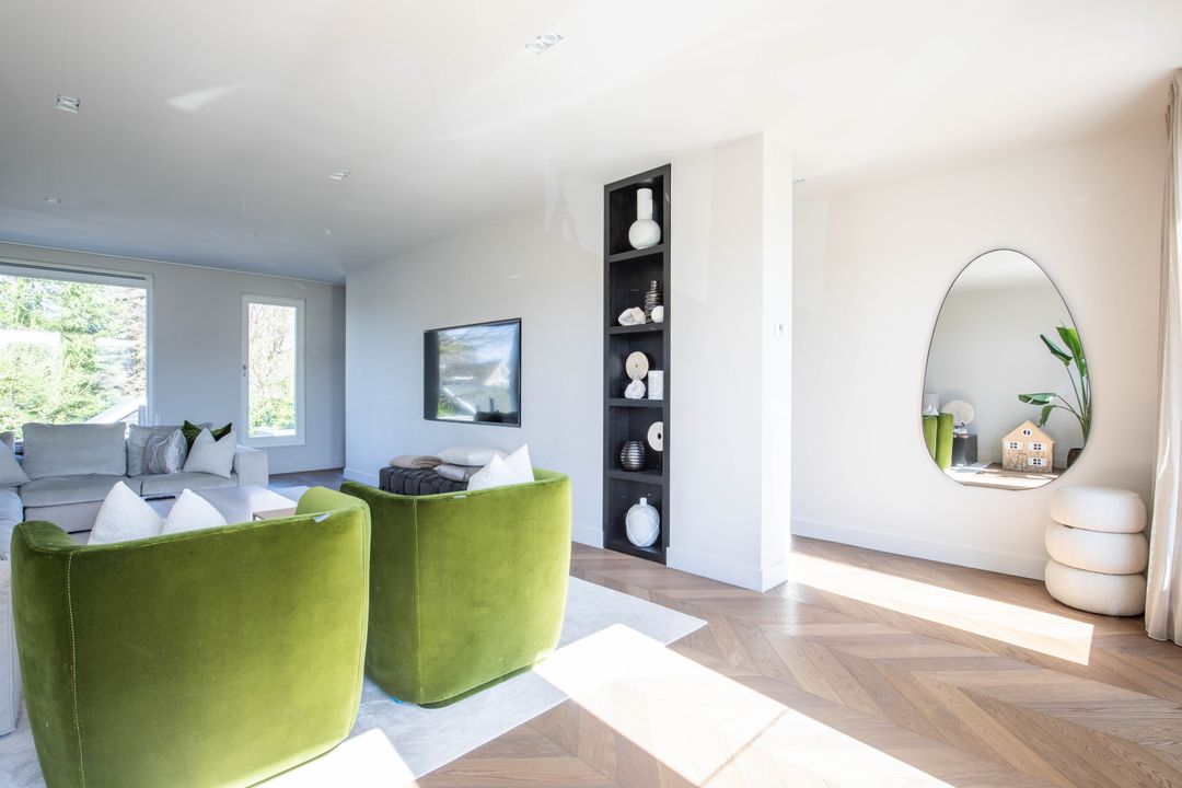 Op de eerste verdieping tref je de woonkamer met een ingebouwde tv-nis en vakkenkast. Hier is meer dan genoeg ruimte voor een fijne leefbank om met familie en/of vrienden te relaxen. Dankzij de grote ramen aan de voor- en achterzijde heeft de ruimte een fijne lichtinval. De fraaie visgraat eiken houten vloer voorzien van vloerverwarming maakt deze fijne ruimte helemaal af.