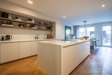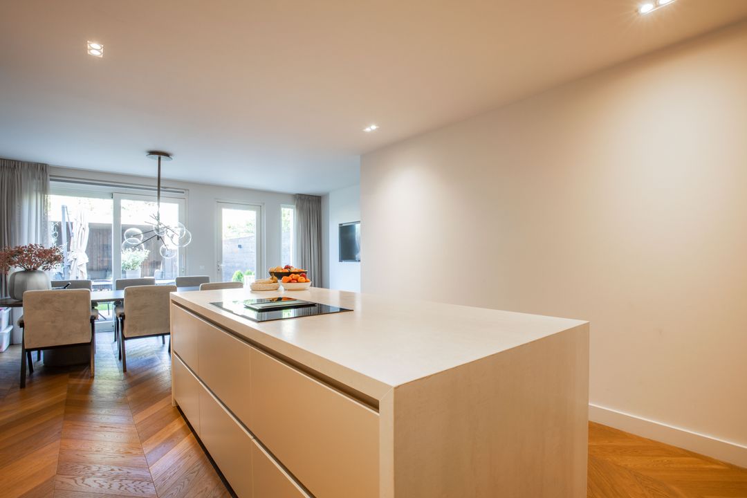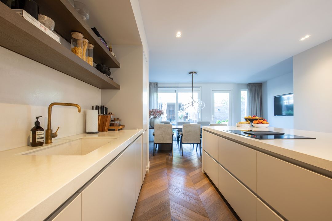 – Stijlvolle woon/leefkeuken op de begane grond met kookeilend, voorzien van diverse inbouwapparatuur en maatwerkkasten;