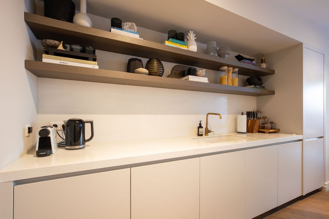 – De gehele woning is voorzien van zeer fraaie maatwerk inbouwkasten;