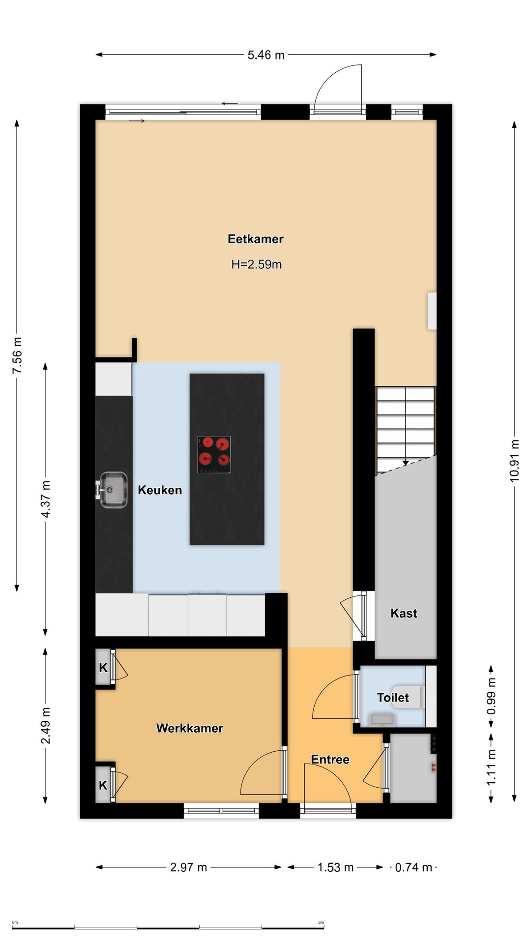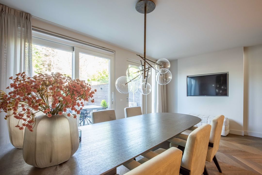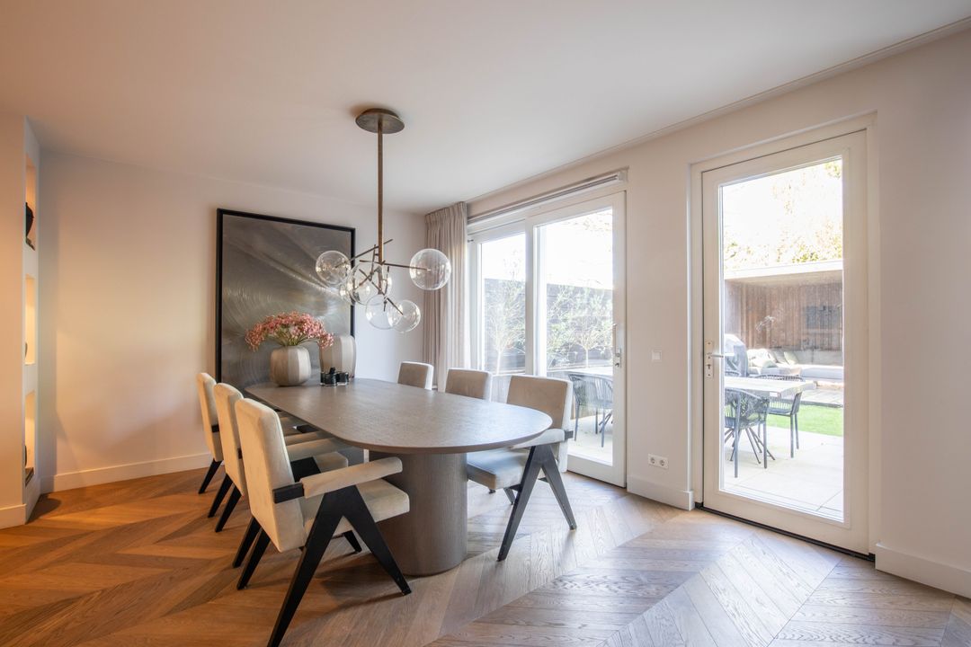 Betreed deze instapklare woning via de entree en ontdek op de begane grond een kantoor/werkruimte aan de voorzijde met een op maat gemaakte kastenwand. De stijlvolle woonkeuken is voorzien van diverse inbouwapparatuur, te weten een inductie kookplaat, een vaatwasser, een oven, een grote koel/vries combinatie en een combi stoomoven. De grote eettafel is gesitueerd aan de tuinzijde, een heerlijke plek met een fijn zicht op de tuin. Al met al een rustige en sfeervolle verblijfsruimte om van te genieten met vrienden en/of familie.
