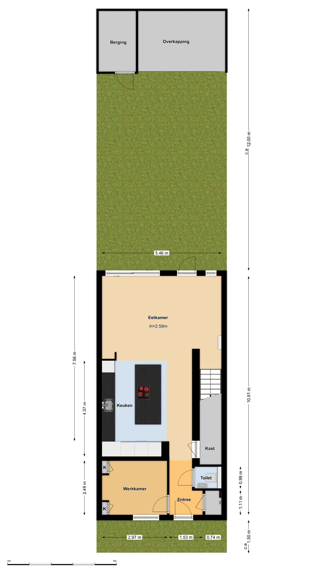 – De zonnige achtertuin met overkapping is te bereiken middels een schuifpui of de loopdeur;