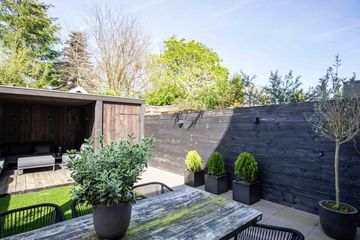 Geniet van de soepele overgang naar de tuin via de schuifpui. De overkapping is ideaal op zowel de zomerse dagen als de minder fraaie Hollandse dagen, hier zit je heerlijk beschut en met veel privacy. De tuin is onderhoudsvriendelijk met mooie grote tegels en een kunstgras gazon.