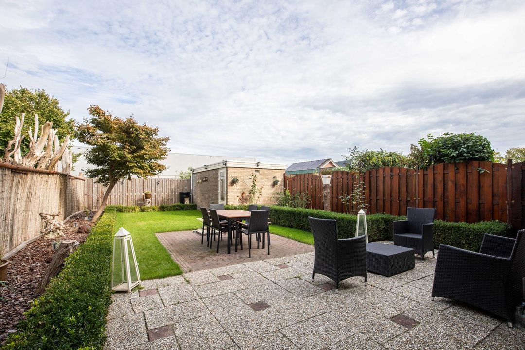 De diepe, brede en zonnige tuin is gelegen op het noordoosten en zuidwesten. Hier zijn diverse zithoekjes te creëren. De tuin biedt veel privacy. De garage en extra tuin zijn via het achterpad te bereiken. Hier heeft u de mogelijkheid om nog een extra garage en/of berging te realiseren. (De garage is tevens via de tuin te bereiken).