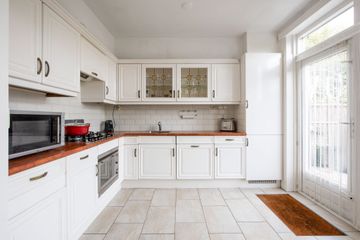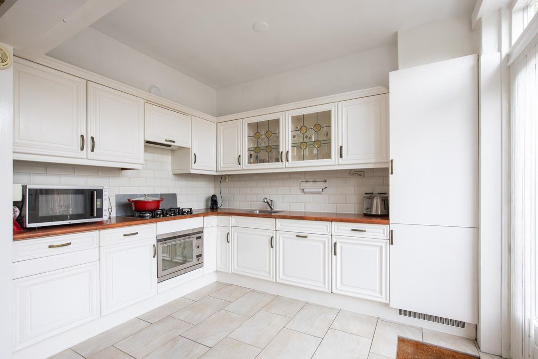 De keuken is uitgerust met een 5-pits gaskookplaat (2019 met wokbrander), een afzuigkap, een vaatwasser (2022), een combi-oven en een koel/vriescombinatie (2022). Alle apparatuur is van het merk AEG. De keukenkastjes bieden voldoende opbergruimte en zijn voorzien van een softclose systeem. De deur in de keuken brengt u naar de achtertuin.