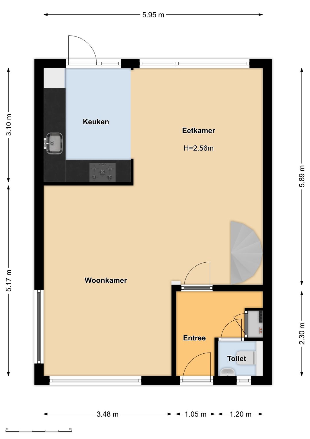 De gezellige woonkamer is gelegen aan de voorzijde en biedt een leuke kijk op het buitenleven. De eettafel is tuingericht geplaatst aan de achterzijde nabij de semi-open keuken. Zo blijft u leuk in contact met de mensen aan tafel wanneer u een heerlijke maaltijd staat te bereiden.