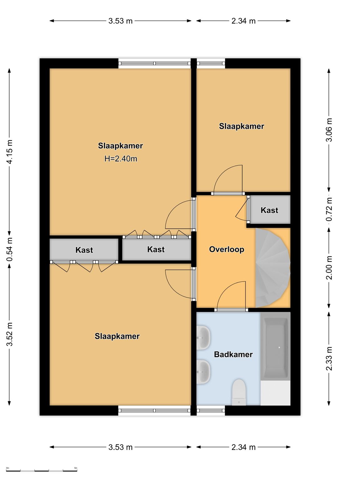 Op de eerste verdieping bevinden zich drie slaapkamers. Twee slaapkamers treft u aan de achterzijde en één slaapkamer aan de voorzijde. De twee grote slaapkamers hebben een vaste kastenwand