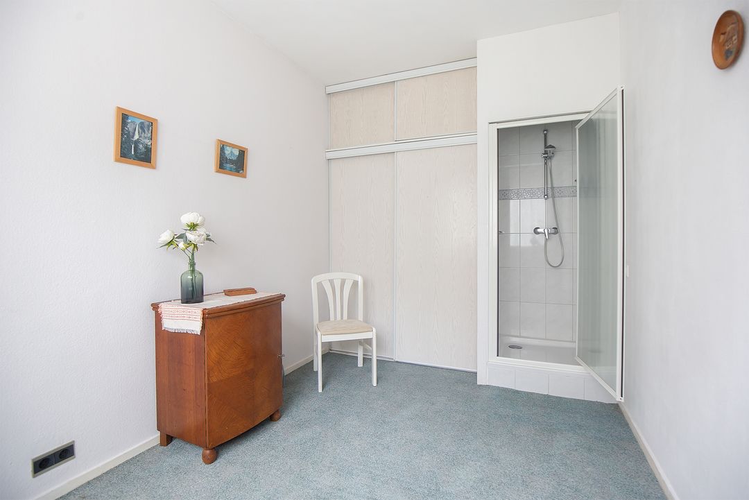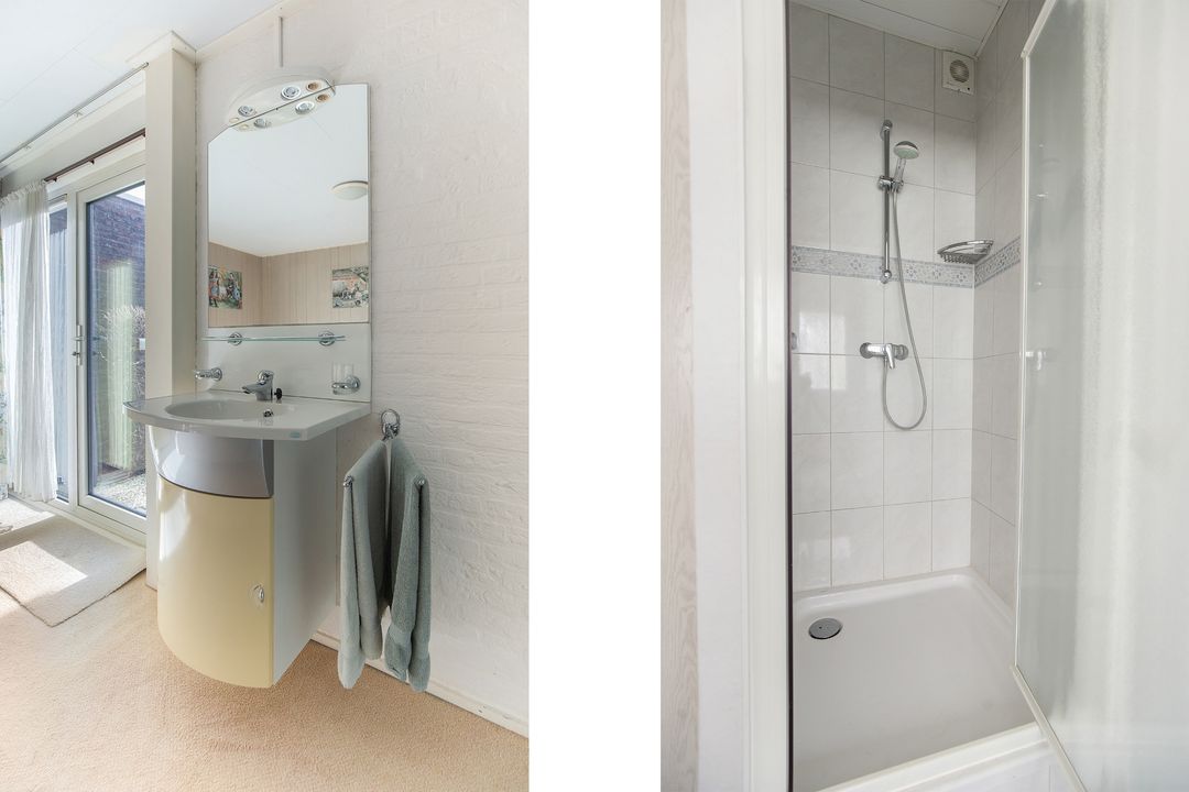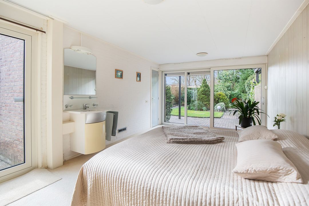 – Master bedroom met een voorkamer met een douchecabine en schuifpui naar de tuin;