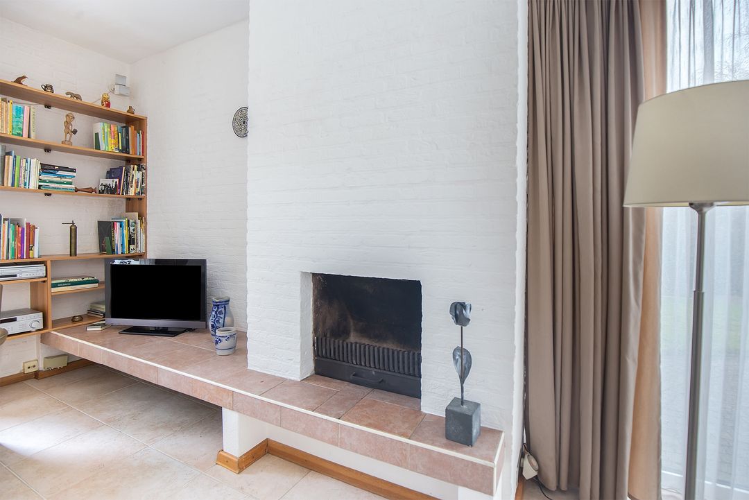 – Ruime woonkamer met een openhaard en een schuifpui naar de tuin;