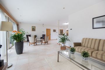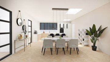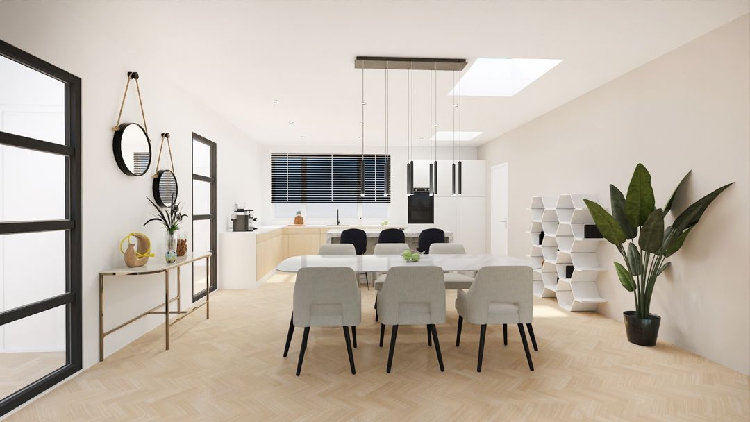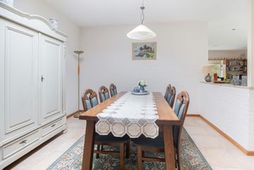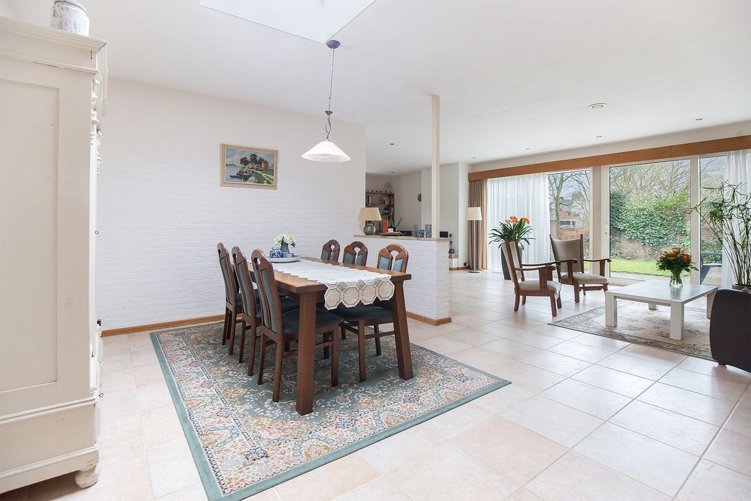 De entree bevindt zich aan de voorzijde van de woning. De hal geeft toegang tot de tuingerichte woonkamer. Bij binnenkomst in de woonkamer word je verwelkomd door een zee van licht dankzij de grote raampartijen. Ook beschikt de woonkamer over een sfeervolle openhaard. De eetruimte met lichtkoepel is perfect voor gezellige diners en ontbijtjes. In de woonkamer treft u een schuifpui die toegang biedt tot de prachtige tuin.