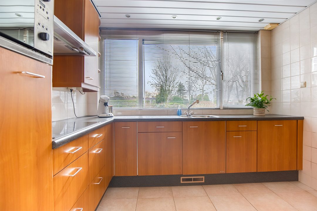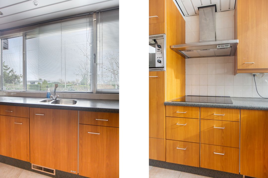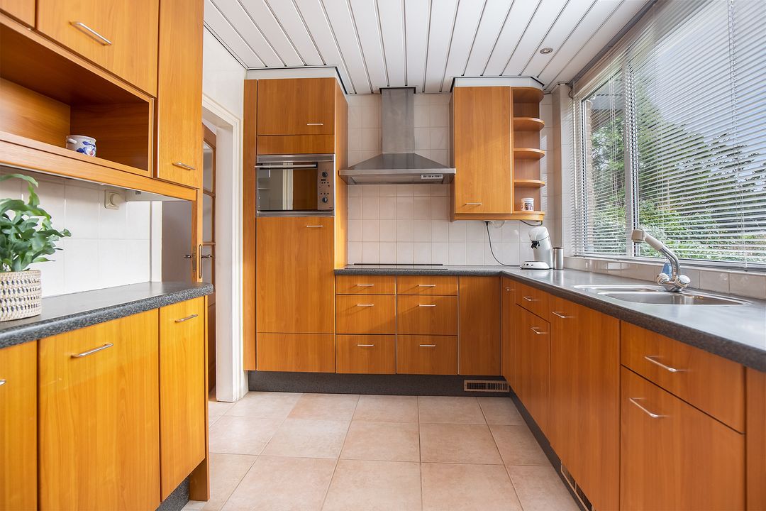 De keuken is uitgerust met een inductie kookplaat, vaatwasser, oven en koelkast, ideaal voor kookliefhebbers. Via de keuken heeft u toegang tot de bijkeuken waar de aansluiting voor de wasmachine zich bevindt. Deze bijkeuken biedt weer toegang tot een praktische inpandige garage met een elektrische deur. Met een oppervlakte van 30m² is er ruimte genoeg voor een auto en andere benodigdheden. Ook kunt u uw auto parkeren op de oprit op eigen terrein.