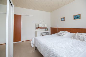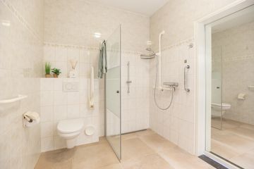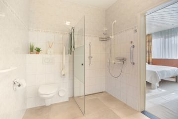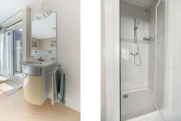 Via de woonkamer betreedt u een tweede hal die toegang biedt tot de drie slaapkamers. De eerste slaapkamer heeft een badkamer en suite met inloopdouche, dubbel wastafelmeubel en toilet. De tweede slaapkamer heeft een eigen wastafel en een schuifpui met toegang tot de tuin. Voor de toegang van deze slaapkamer bevindt zich een handige voorkamer met daarin een douchecabine en opbergkasten. De derde slaapkamer (voorheen twee slaapkamers) is makkelijk terug te brengen naar twee slaapkamers dankzij de dubbele entree. Twee slaapkamers zijn voorzien van rolluiken.