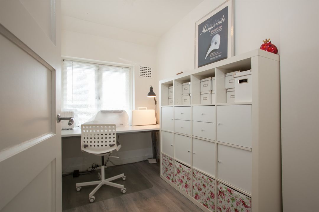 De twee overige slaapkamers op de eerste verdieping zijn momenteel in gebruik als werkkamer en kastenkamer.