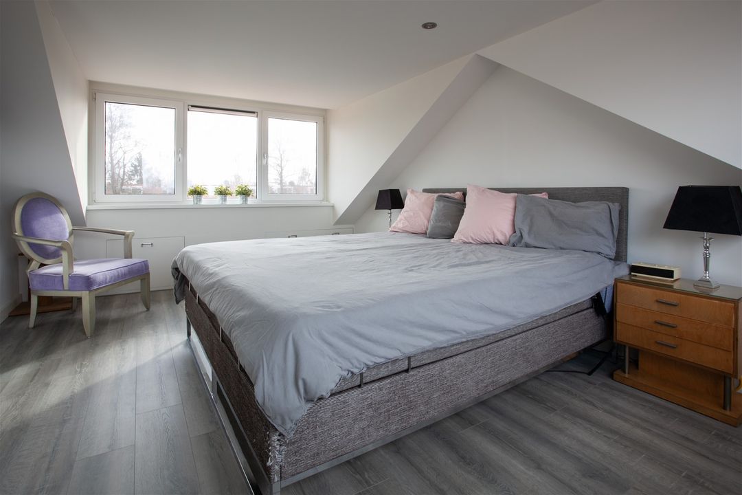 Op de tweede verdieping vindt u de master bedroom en een wasruimte. De verdieping is vergroot met een dakkapel aan zowel de voor- als aan de achterzijde.
