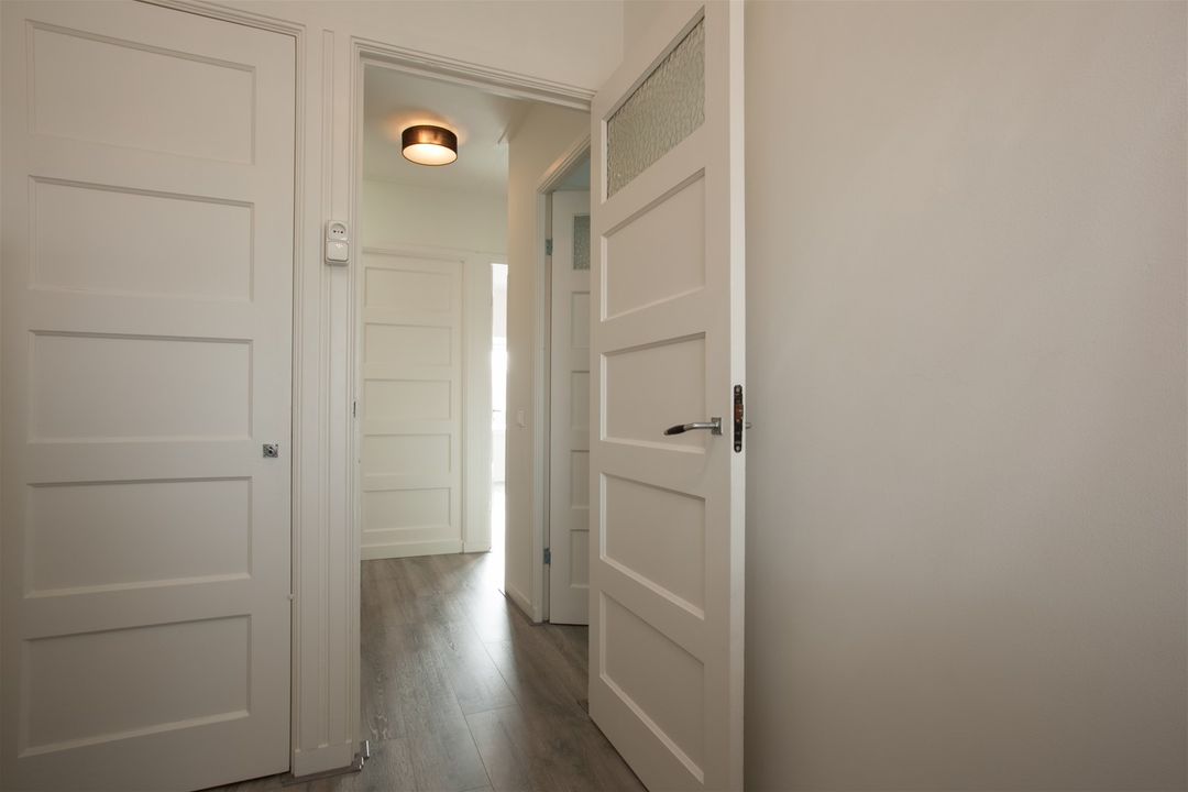 – Behoud van originele elementen als paneeldeuren (5-vlaks), glas-in-lood en tegelwerk entree;