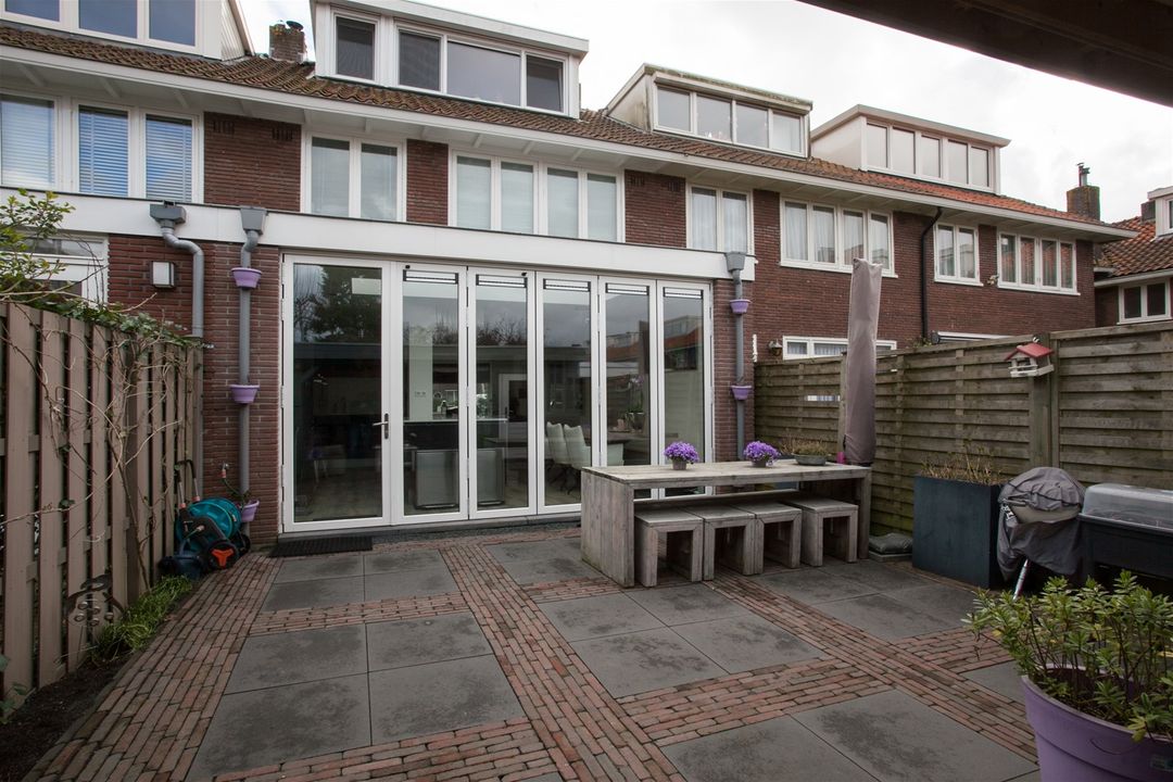 De tuin biedt veel zon dankzij de centrale ligging in het blok. Via de schuur bereikt u het achterpad (op eigen grond gelegen).