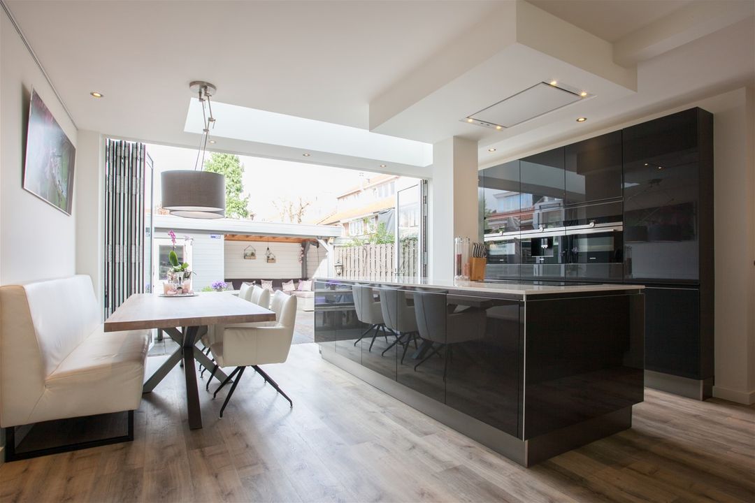 Dankzij de brede glazen harmonica pui aan de achterzijde van de woning verbindt u binnen gemakkelijk met buiten. Wat is dit genieten op een mooie zomerdag!