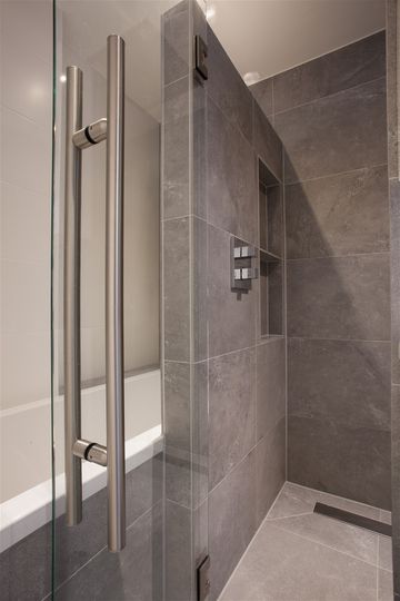 De ruimte is geheel betegeld en heeft vloerverwarming.
