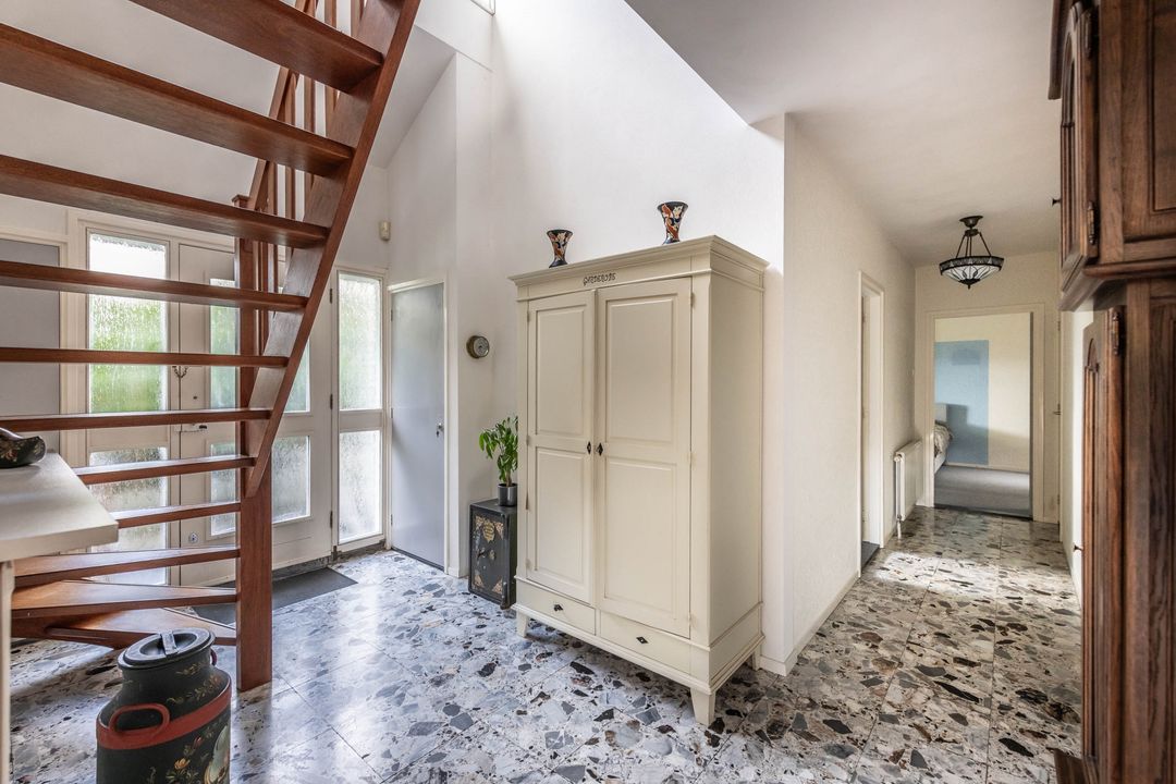 De entree bevindt zich aan de voorzijde van de woning. De ruime hal met vide en plavuizen vloer geven direct een welkom gevoel. Vanuit de hal is er toegang tot de woonkamer en de slaapkamer op de begane grond. Tevens bevinden zich hier het moderne zwevende toilet met fonteintje, de meterkast en de trap naar de eerste verdieping.
