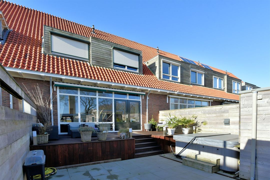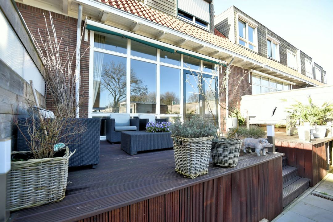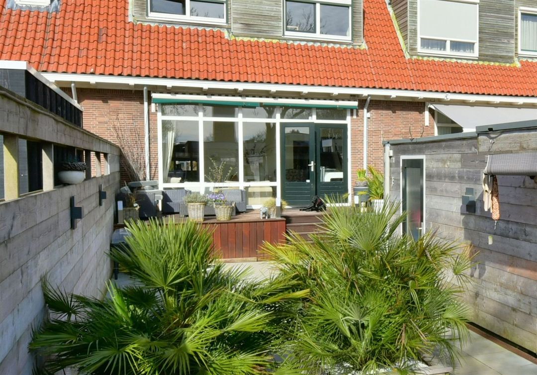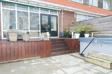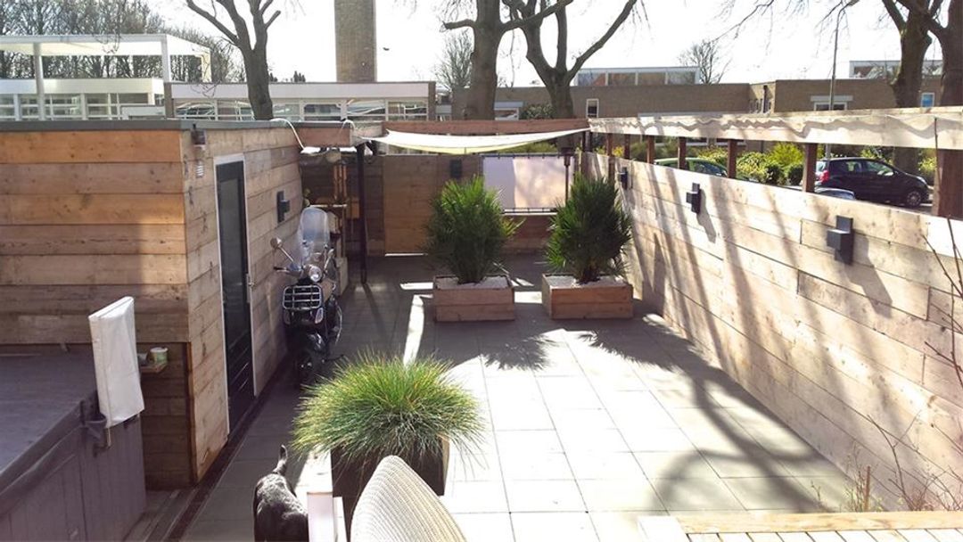 Vanuit de woonkamer, welke op een hoger niveau is gelegen komt u middels de openslaande deuren in de tuin. De zonnige tuin (zuidoosten) is fraai aangelegd met een terras van hardhout, grijze tegels, heeft een vrijstaande berging (4,5 x 2,5), een knusse veranda (tuinkamer) en er staat een jacuzzi waar u heerlijk kan genieten van de mooie avonden. De tuin is maar liefst 15 meter diep, waarvan 5 meter mandelig eigendom.